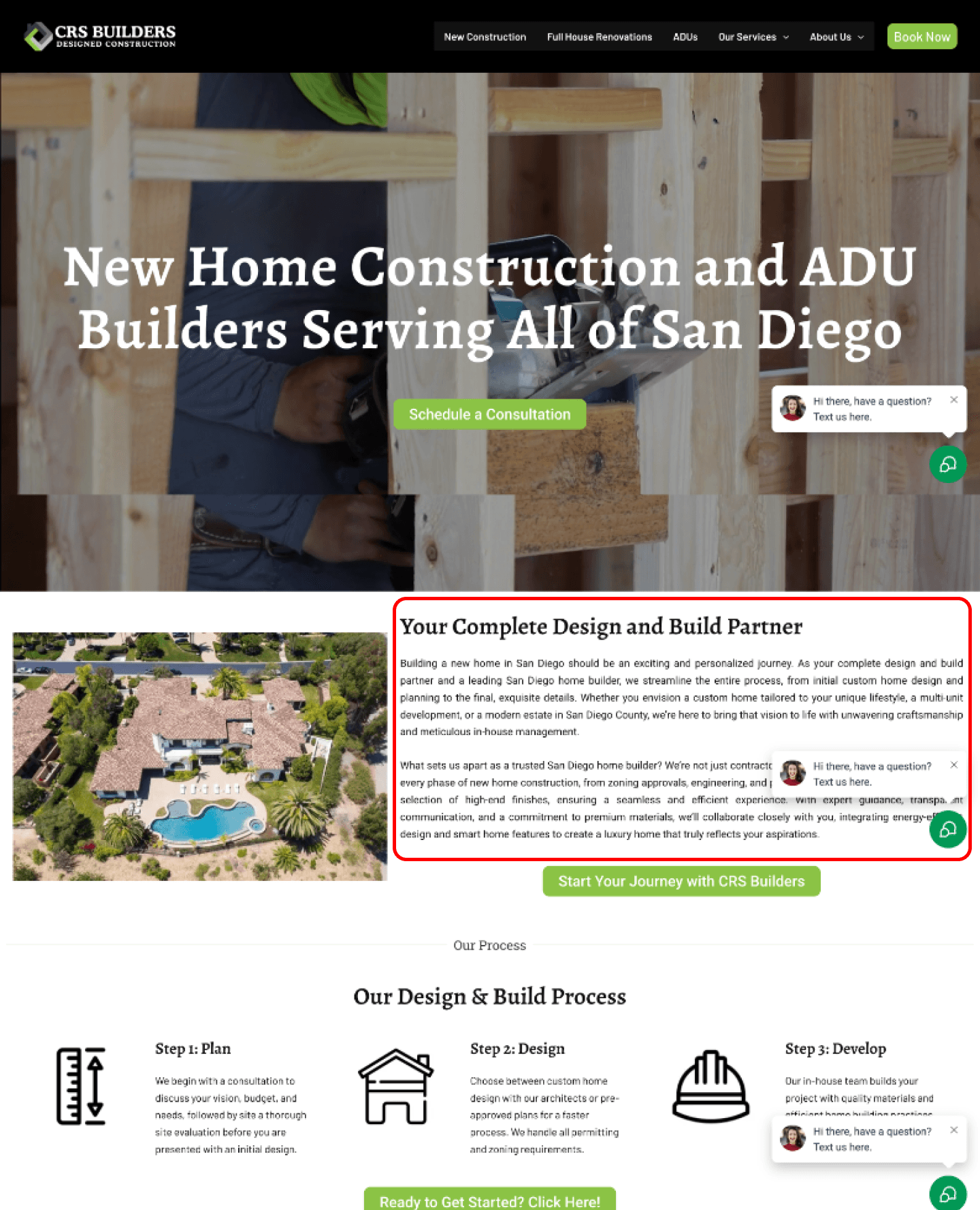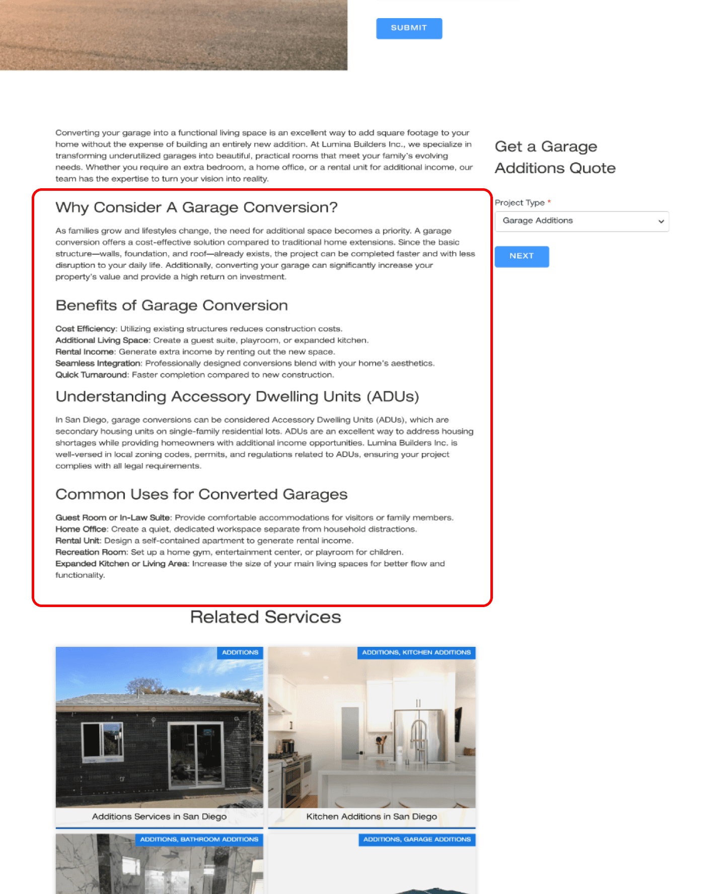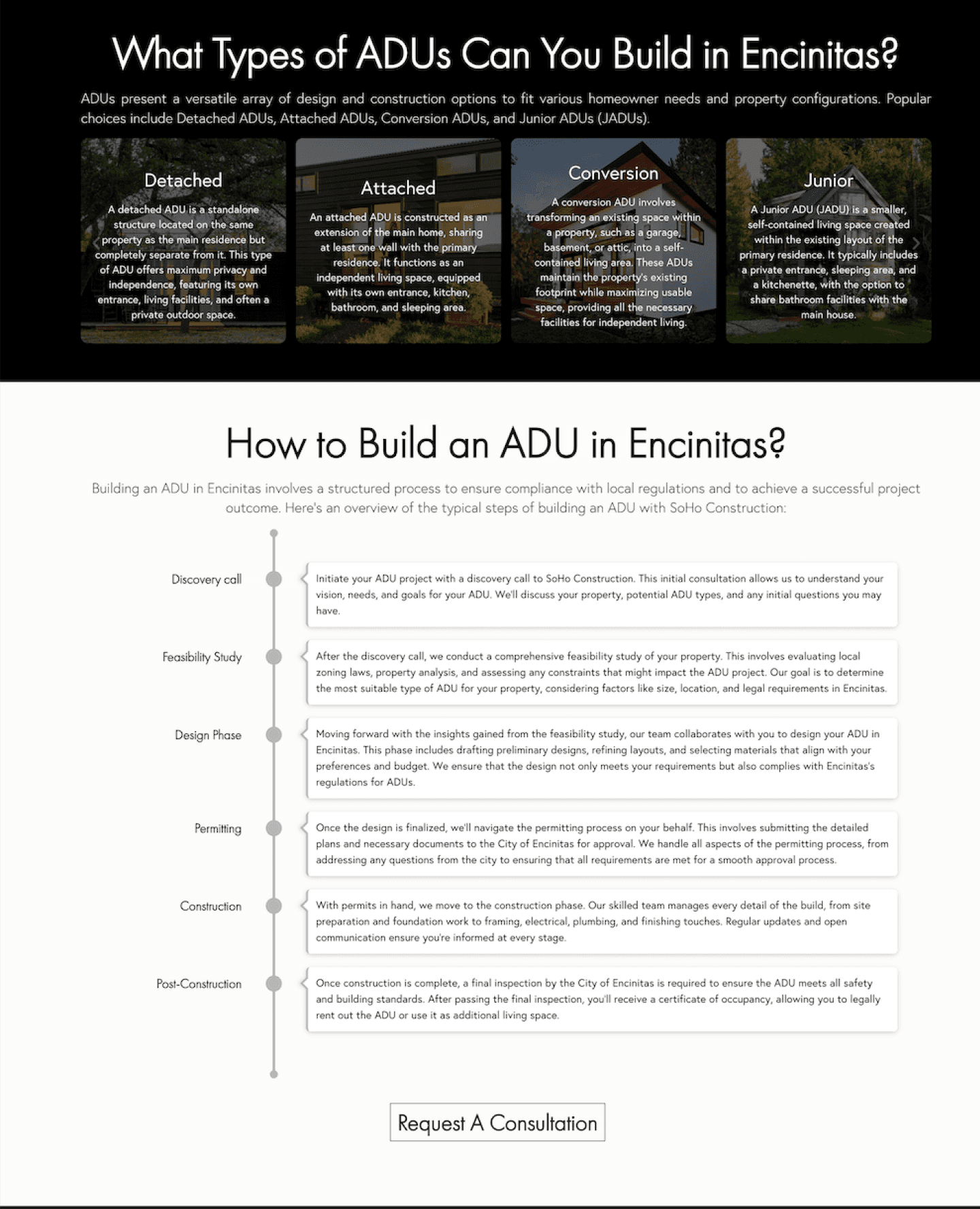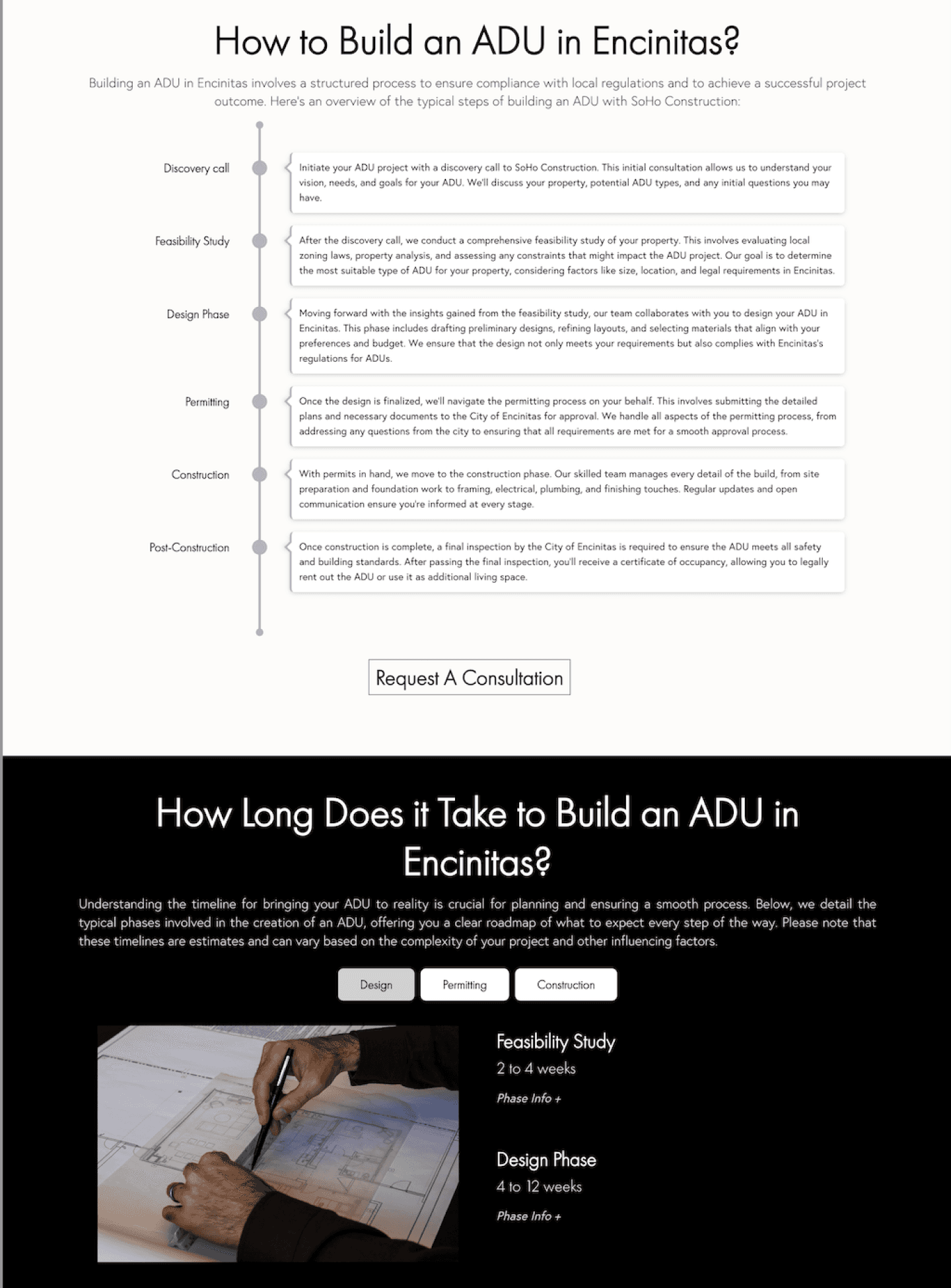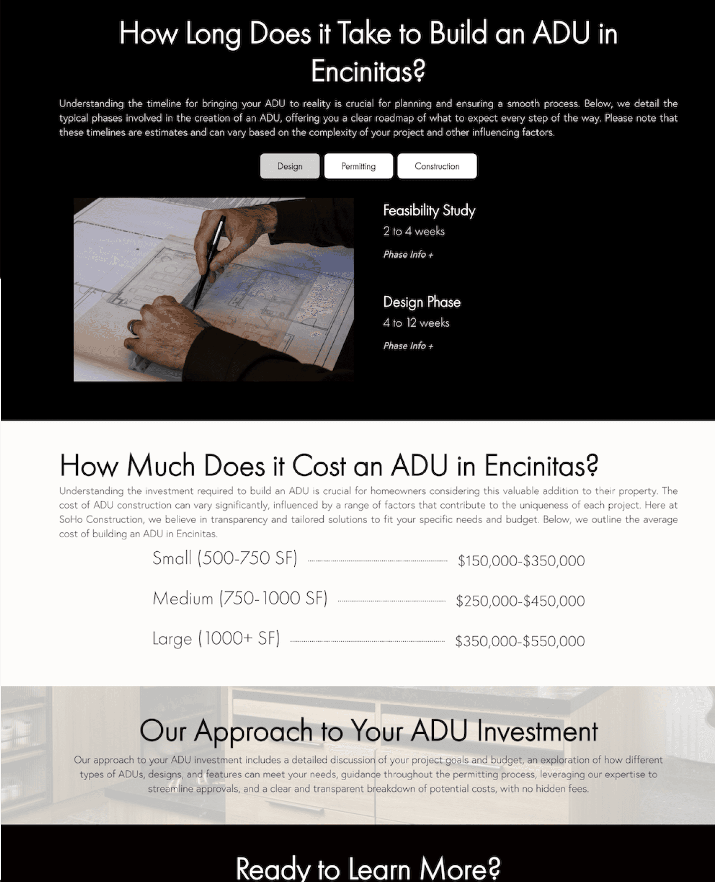 Before the redesign, Soho’s ADU page shared many of the same issues I observed in competitor sites: