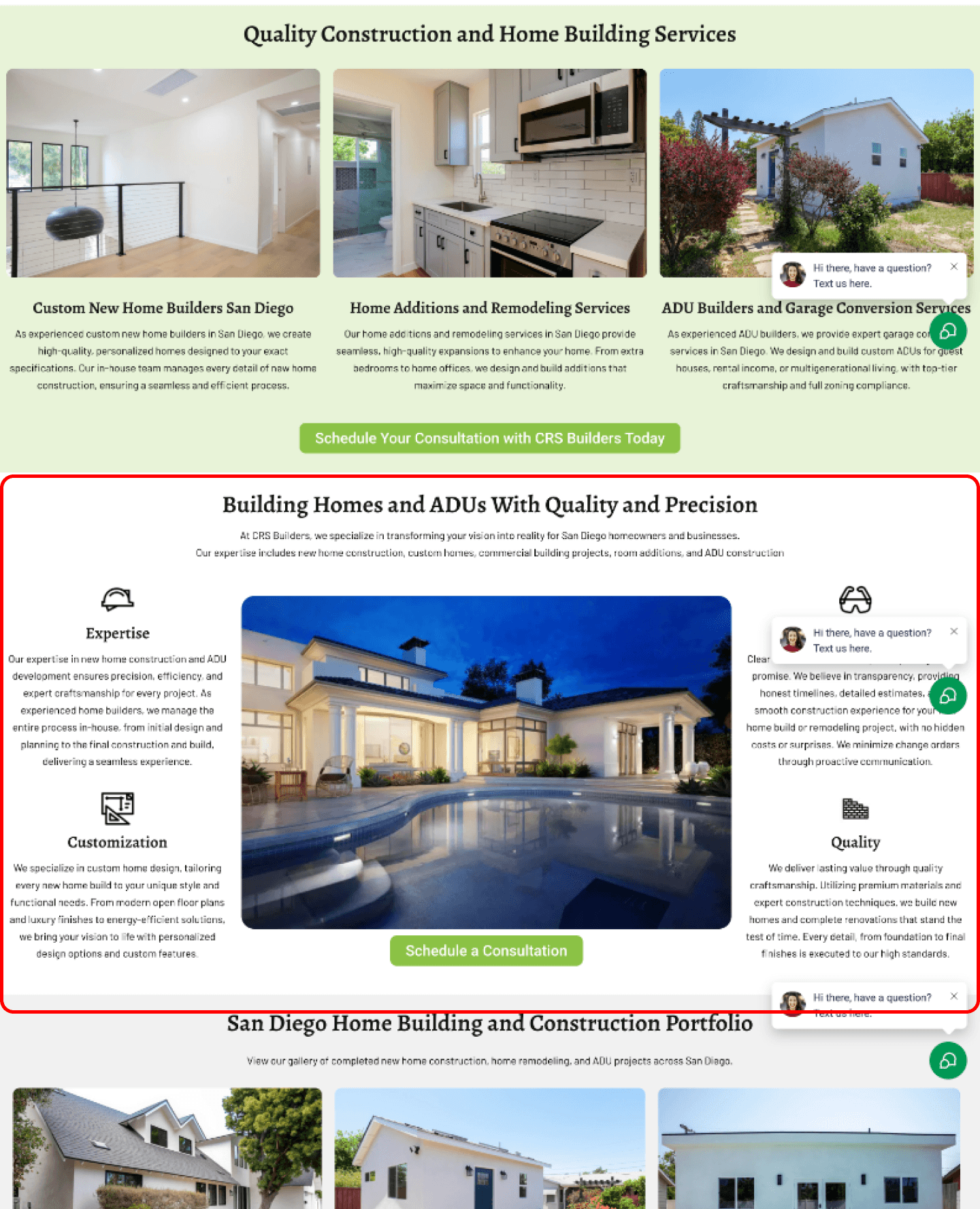 “Building Homes Throughout San Diego” and “FAQ” feel like filler.