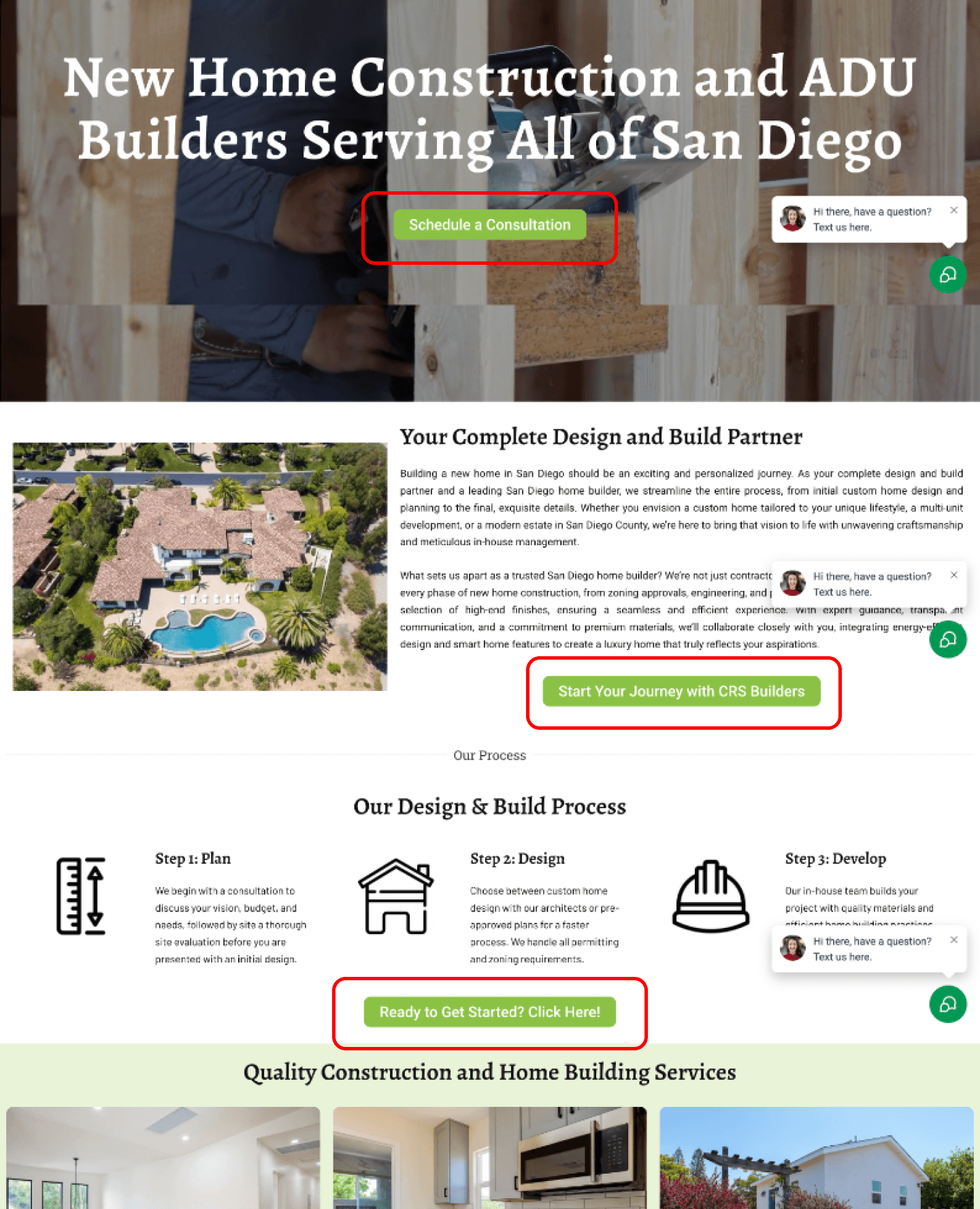 CRS Builders’ page suffers from key UX issues: repeated CTAs, inconsistent hierarchy, and information overload. Rather than guiding the user with structure and flow, the page throws everything at once — making it hard to focus, absorb, or act.